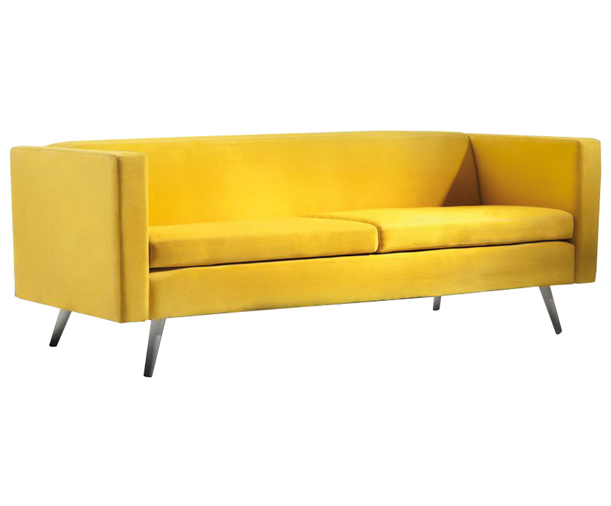 Sofá três lugares: H70 x L185 x P80 Opção de acabamento: pés palitos de madeira tingidos em mel, preto, branco ou tabaco