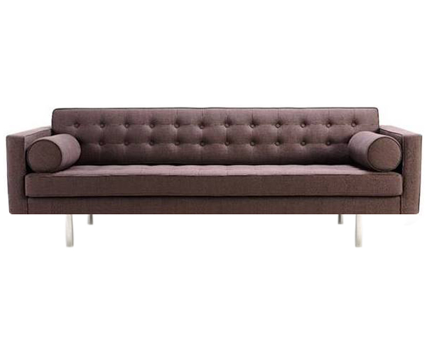 Sofá três lugares: H80 x L240 x P90 Sofá dois lugares: H80 x L204 x P90 Acompanha dois rolos Pés em aço inox